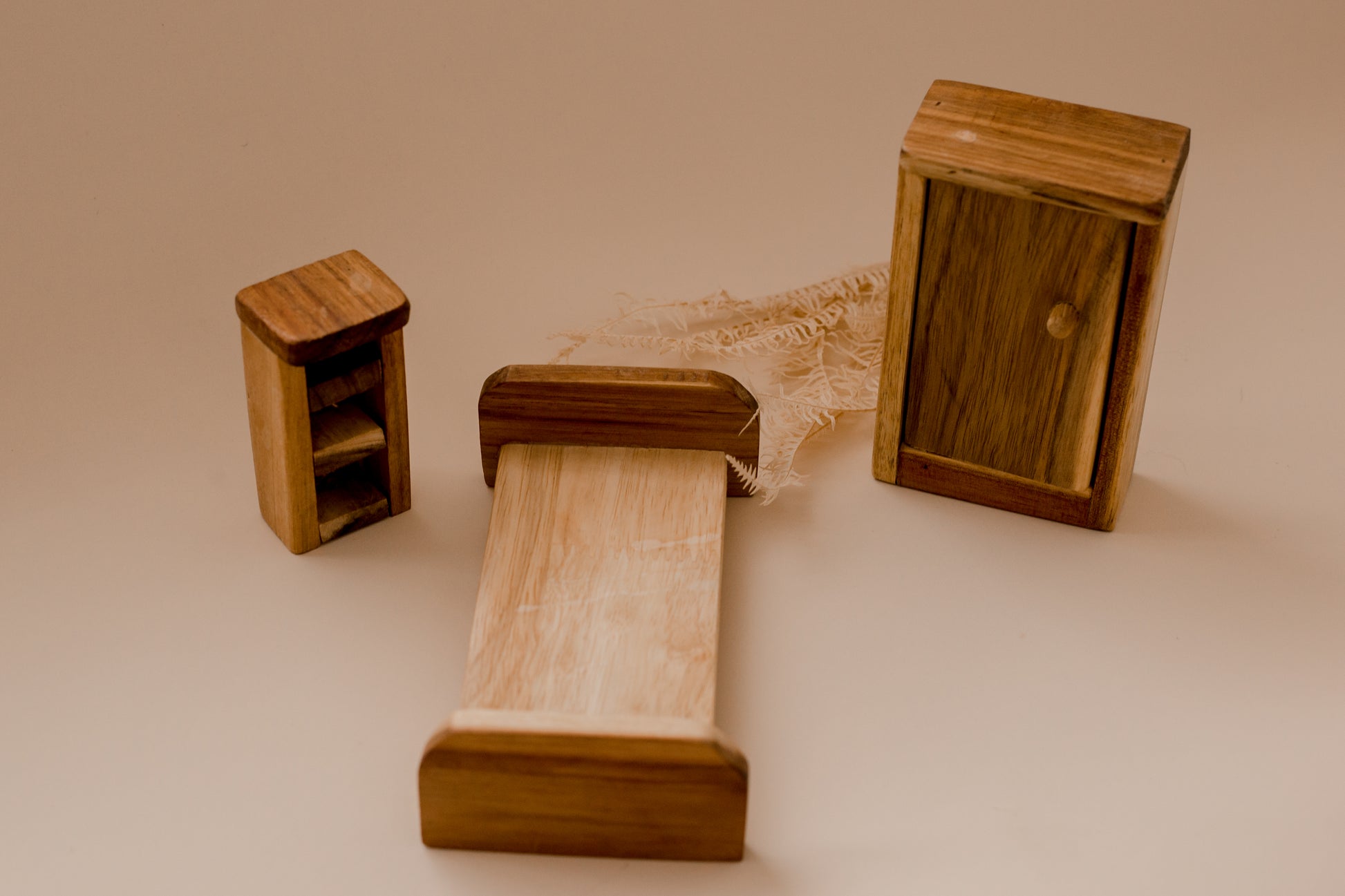 Designed for imaginative play, this charming bedroom set is crafted from recycled tree branches, making it an eco-friendly choice. The natural wood finish adds a realistic touch, and all materials are child-safe and non-toxic. Perfectly sized for any dollhouse, it encourages creativity, storytelling, and social play. A beautiful addition to any playroom!