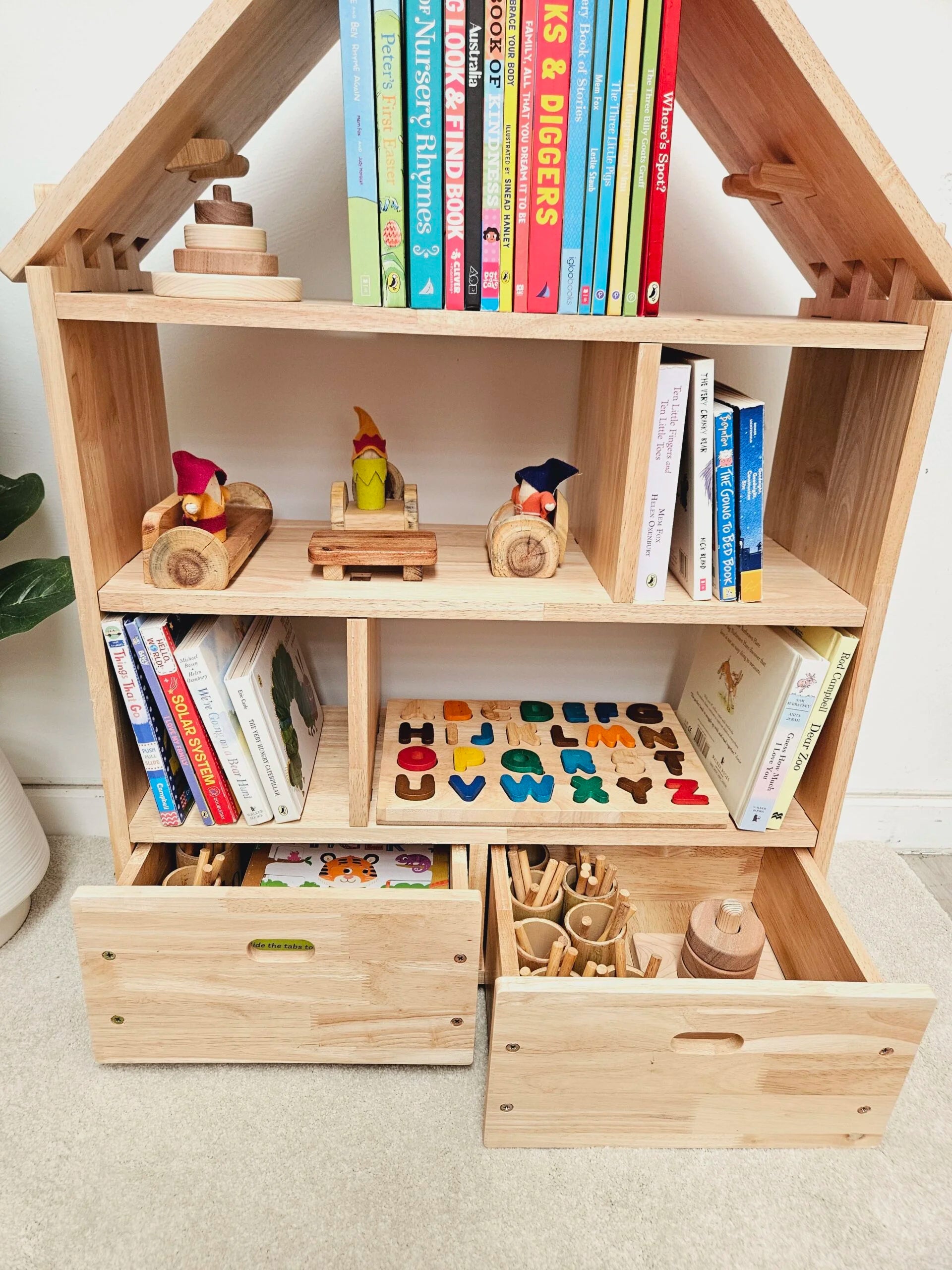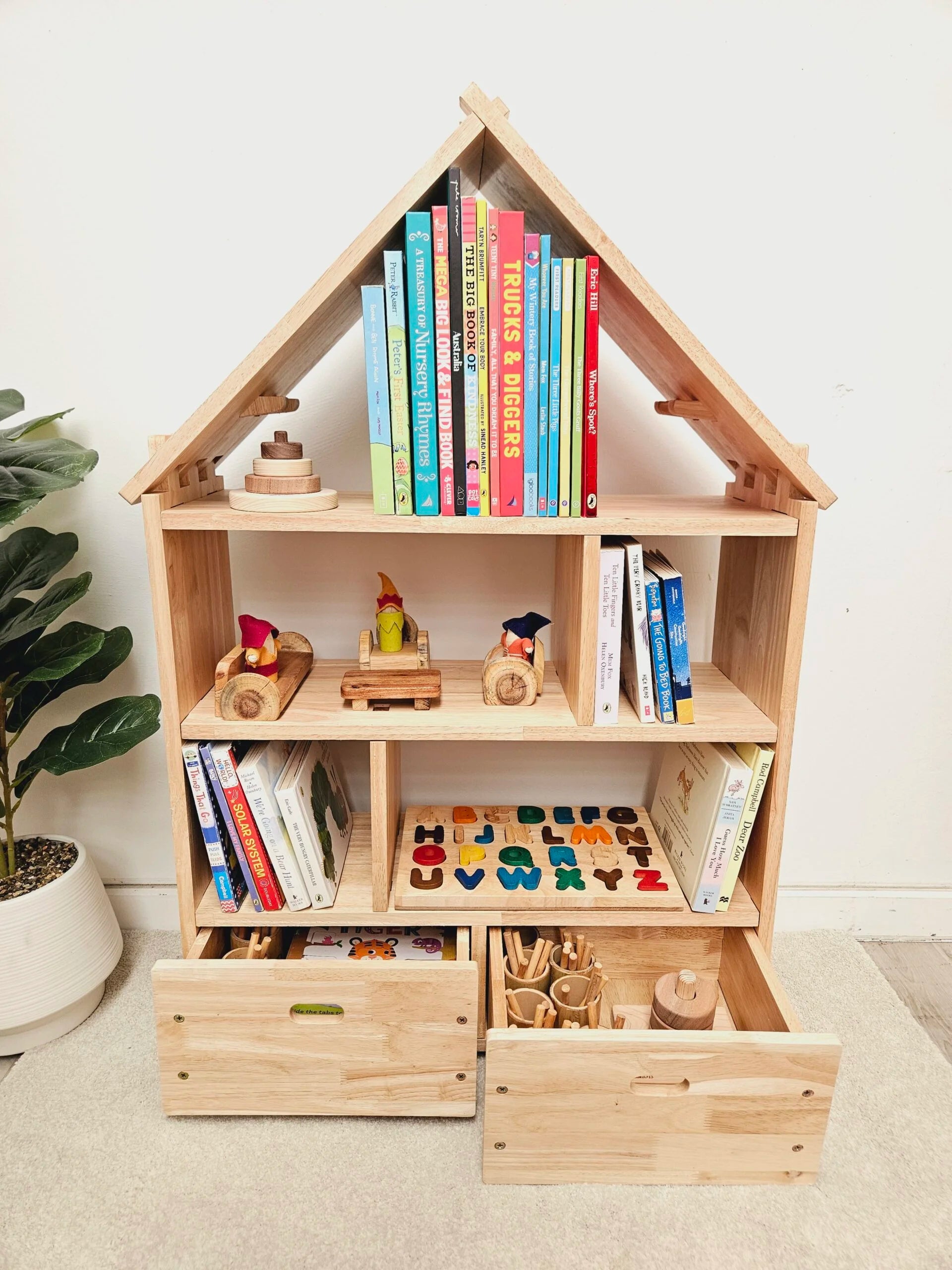 The Wonder House Bookshelf is a charming and practical storage solution for children's rooms. Designed to resemble a whimsical house, it provides ample space for books, toys, and other belongings. Made from sturdy, sustainable materials, this bookshelf encourages organisation while adding a touch of fun to any room.